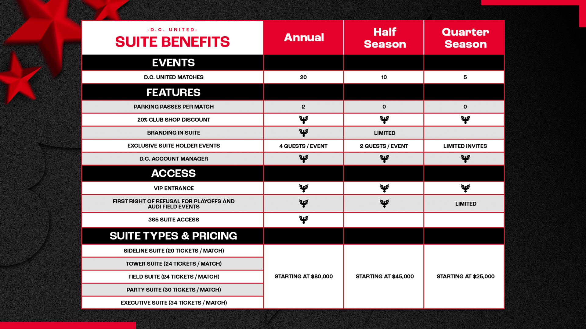 Experience the Suite Life by joining D.C. United's exclusive full & partial suite holder family